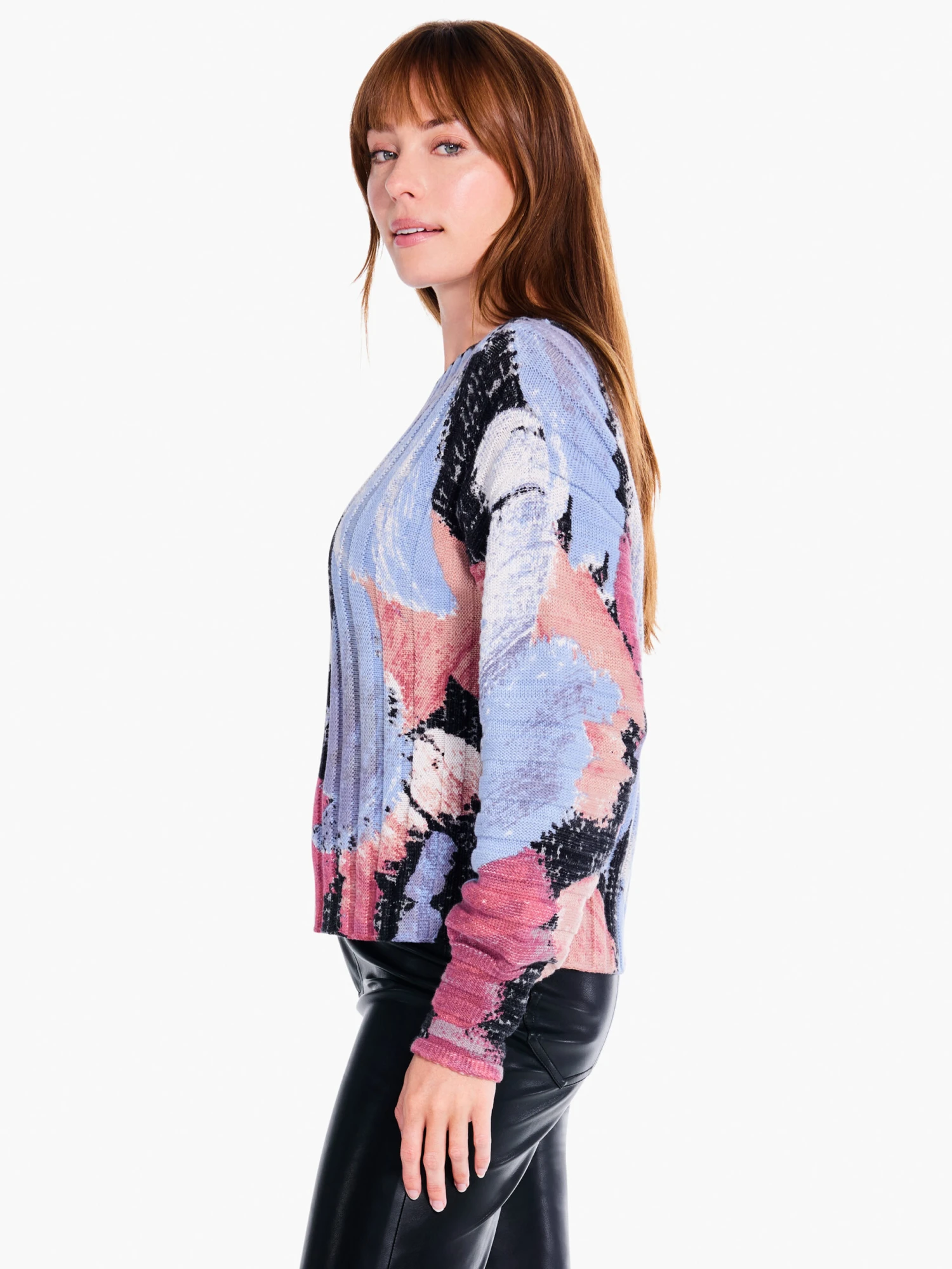 This sweater shows just how fun and functional knitwear can be. A print on textured yarn, we love this piece’s unique abstract floral design made with exaggerated brush strokes. The fit is relaxed with a dropped shoulder and a hem that sits at the hip.