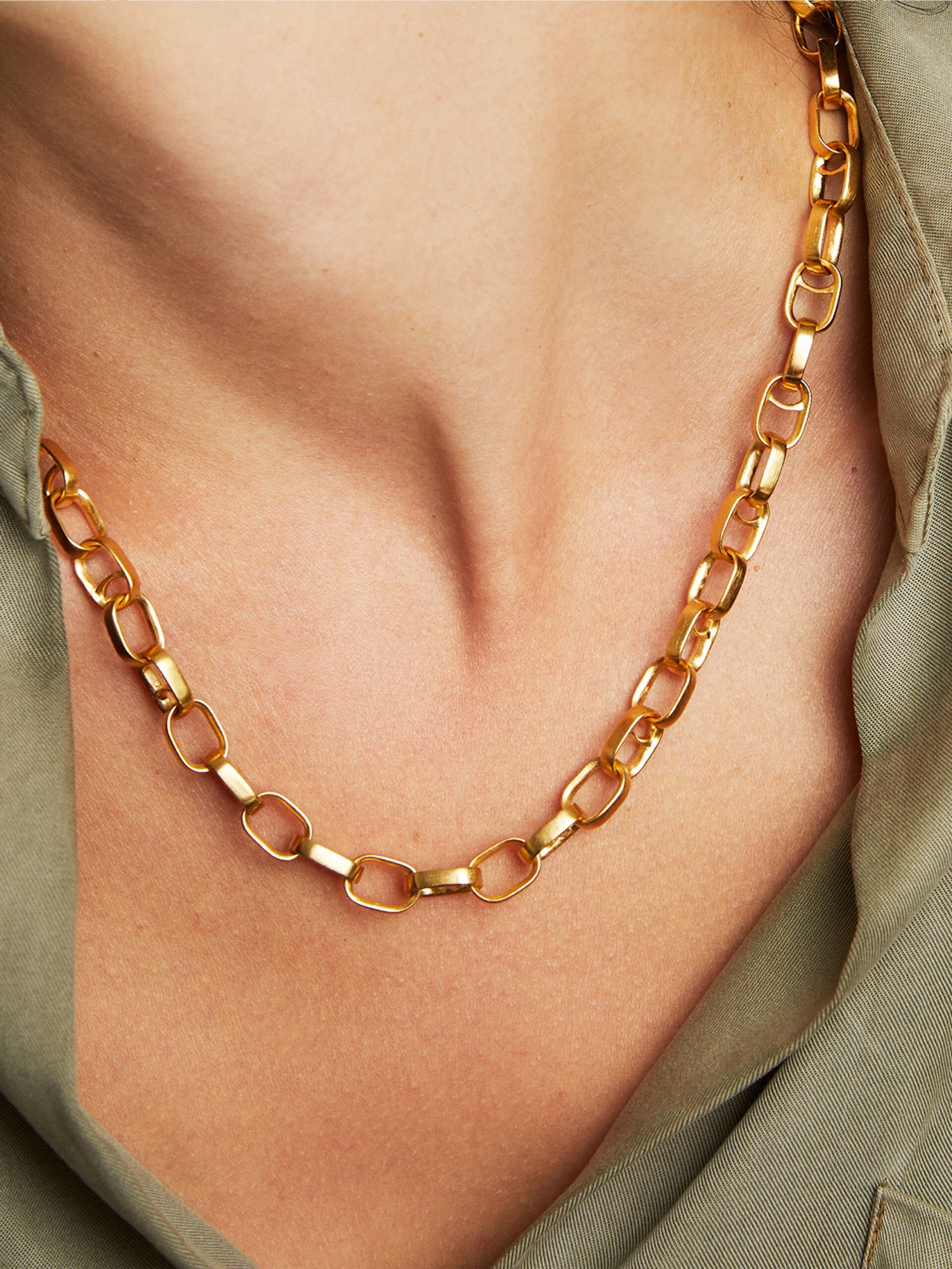 Simple yet statement-making, the Manhattan Chain Link Statement Necklace features a luxe chain design elevated by the Dean Davidson Signature brushed gold finish, and an adjustable toggle allowing the necklace to be worn at customizable lengths. Pairs perfectly with Dean Davidson’s Manhattan Bracelet.