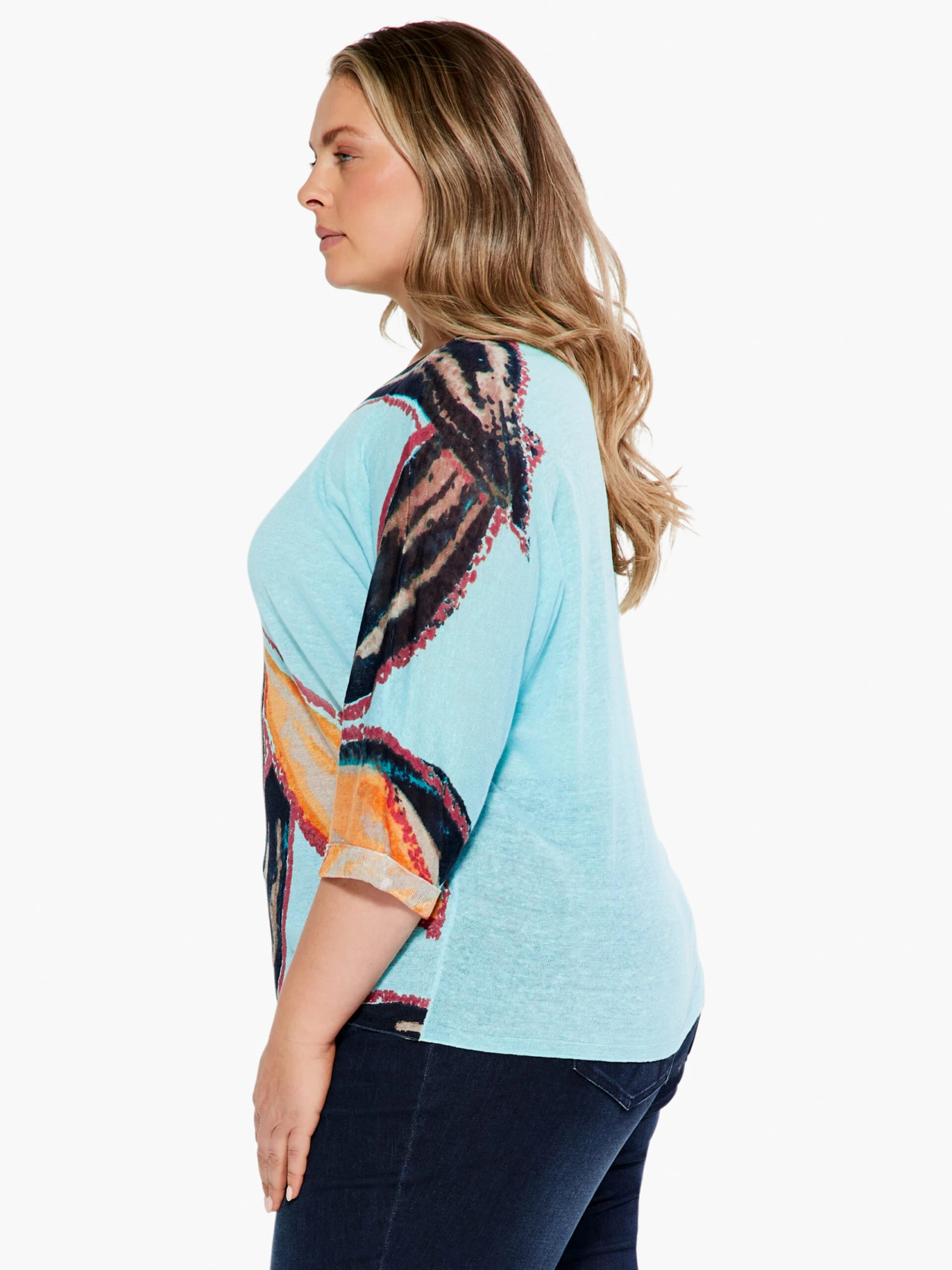 An eye-catching print that speaks to nature and time spent outdoors, printed on top of our feather knit fabric, a super comfortable linen blend. This pullover top featuring a modern, relaxed fit, a widened boat neck, generous dolman sleeves that reach to the elbow, and a hem that sits at the hip.