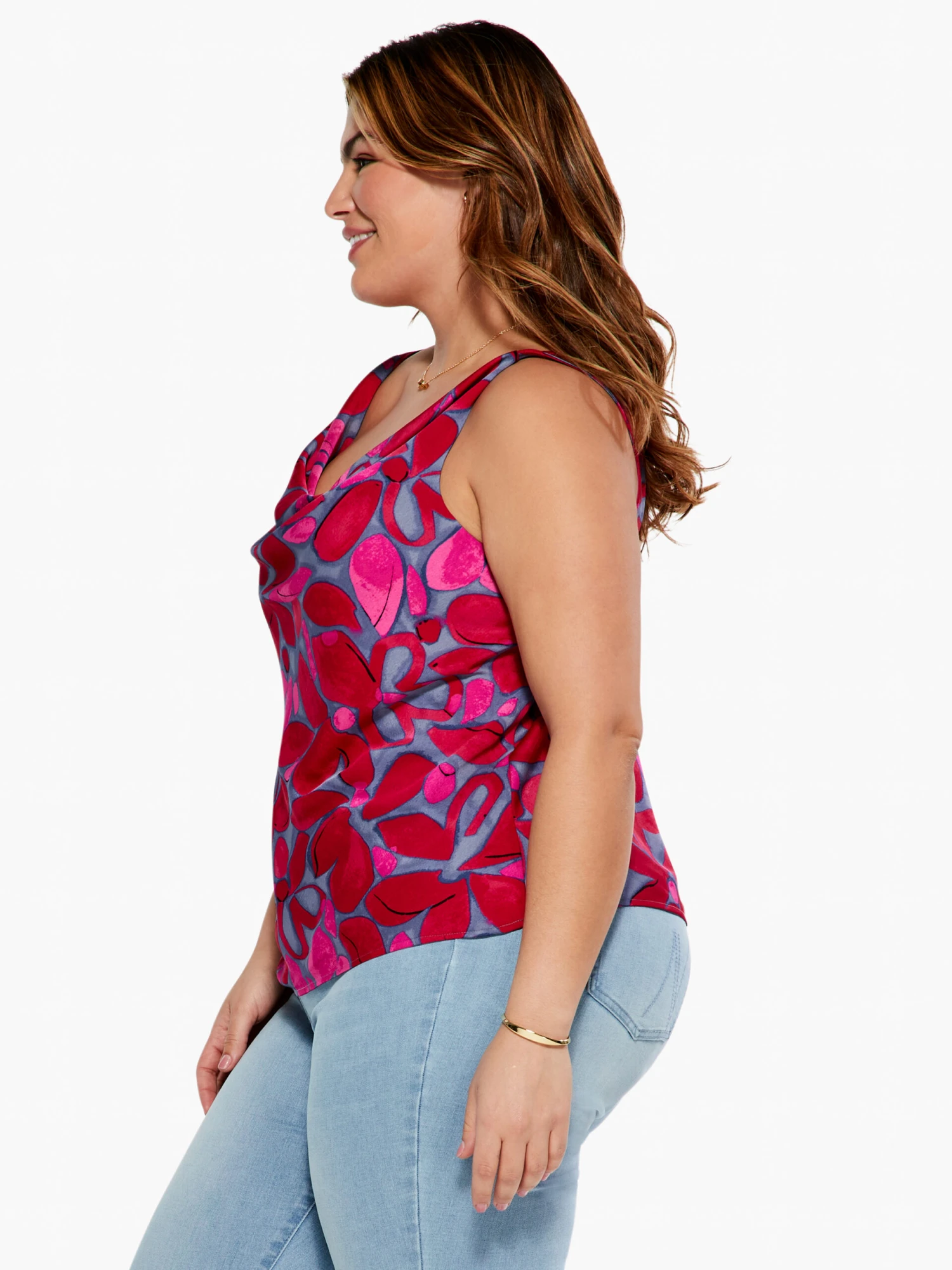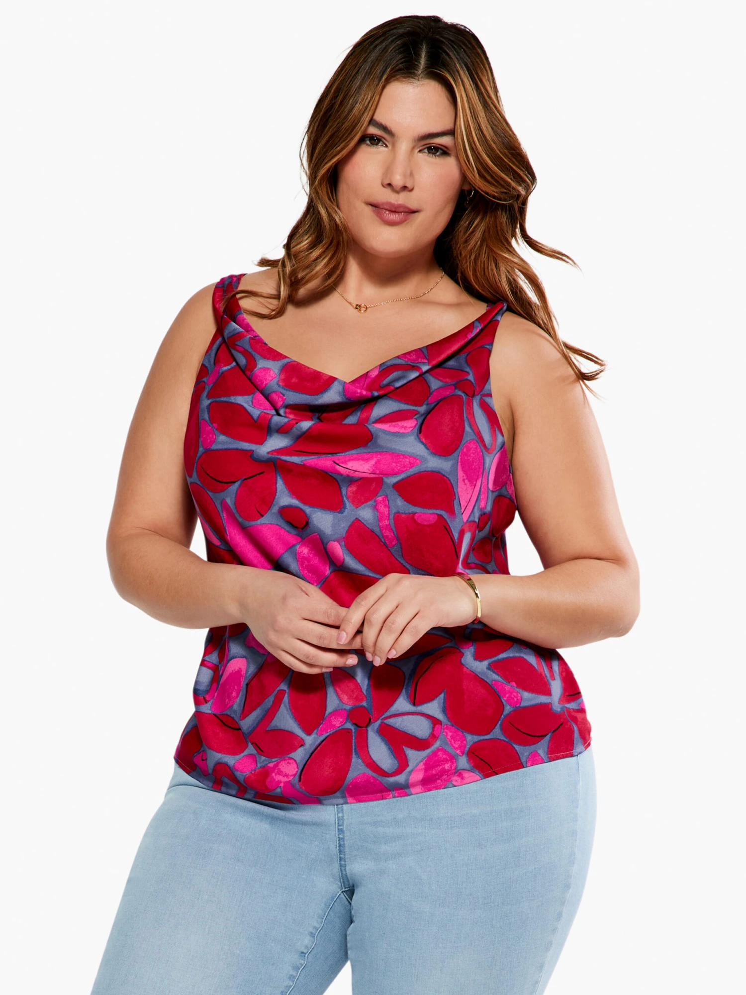 Put on the spring season with this cheerful floral design in bright complementary colors and an easy tank silhouette to match. Dress it up with a blazer and elegant neutrals or keep things casual and pair it with jeans. Super soft and flowy and with a comfortable drape neck. Sits at the hip.