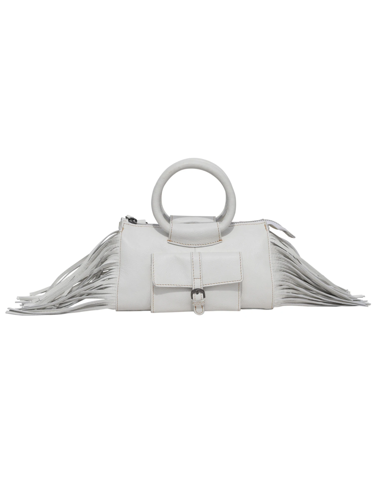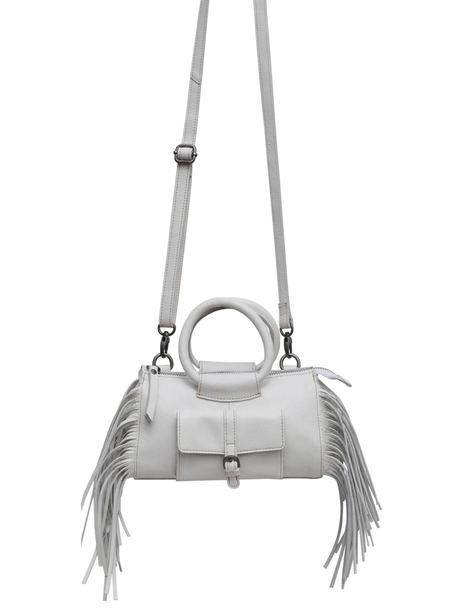 Equal parts functional and playful, we’re 100% obsessed with the style and convenience of this 100% leather mini bag. Goes with just about any outfit, whether you’re holding it from the top handles or the detachable crossbody/shoulder strap. Details include a zip-entry, side flap pocket with magnet snap closure, stylish round handles, and super-soft funky fringe.