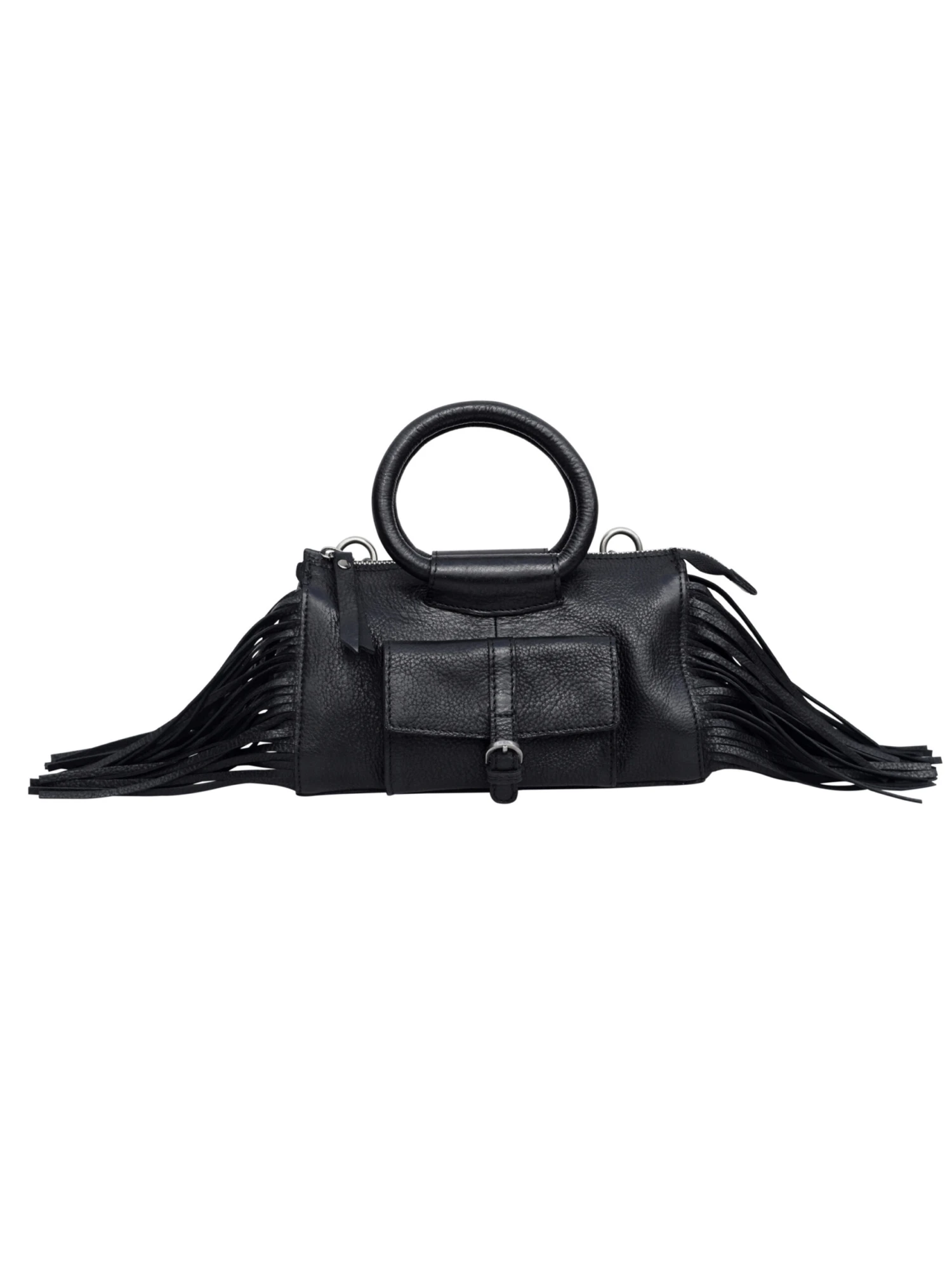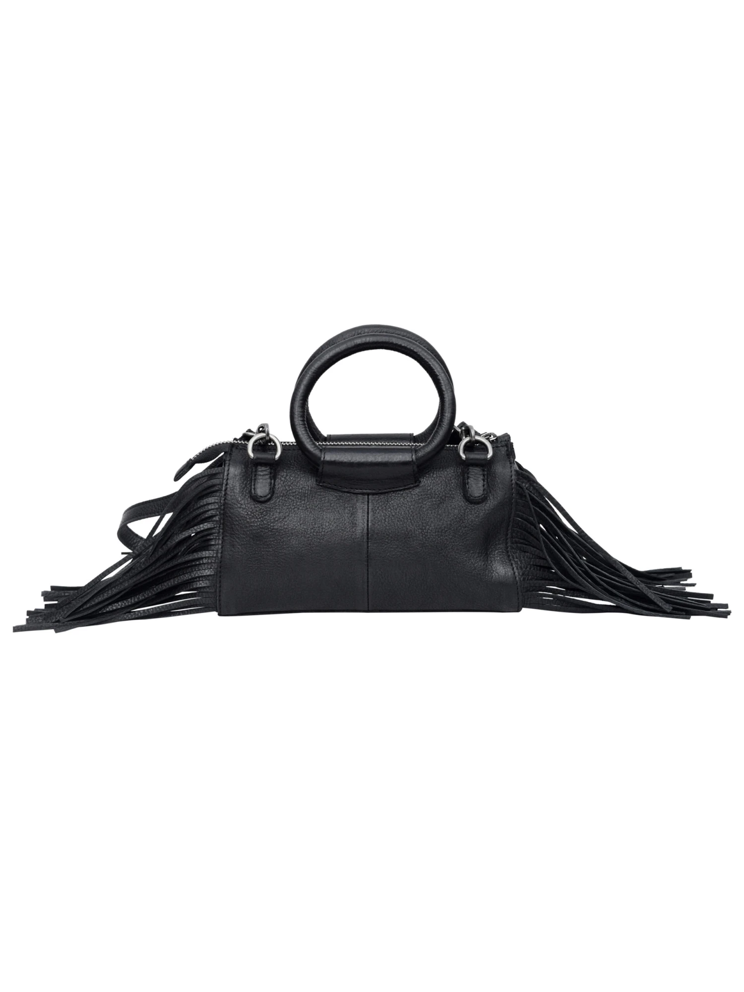 Equal parts functional and playful, we’re 100% obsessed with the style and convenience of this 100% leather mini bag. Goes with just about any outfit, whether you’re holding it from the top handles or the detachable crossbody/shoulder strap. Details include a zip-entry, side flap pocket with magnet snap closure, stylish round handles, and super-soft funky fringe.
