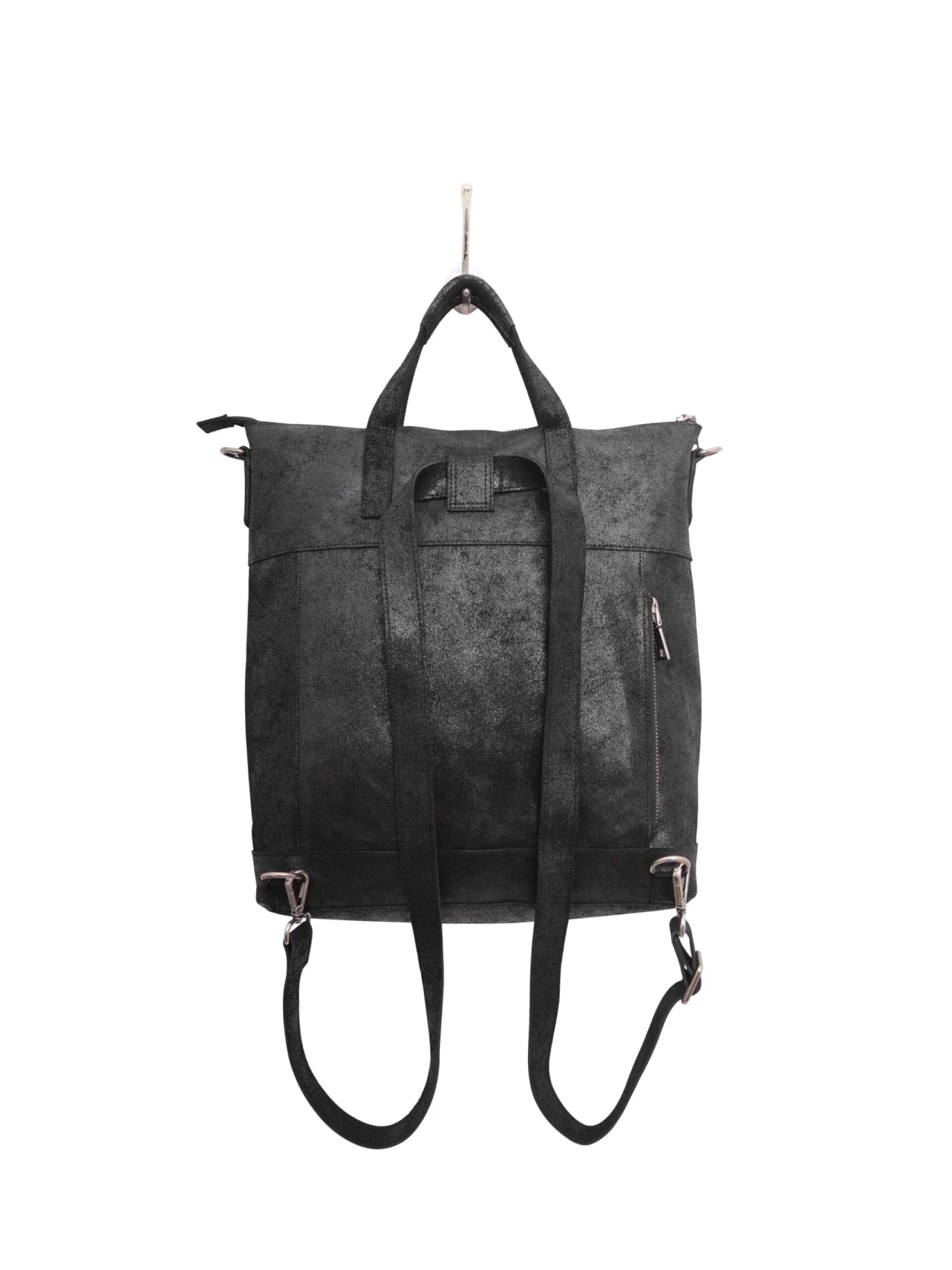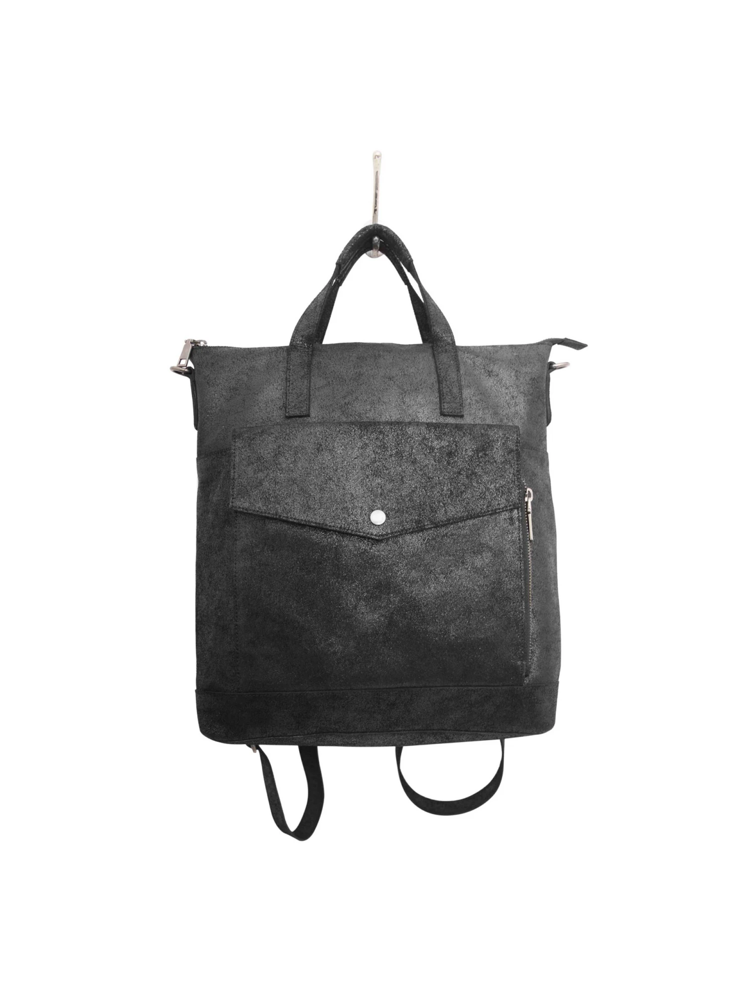 Designed for utility, carry this modern bag four ways! Shoulder bag, crossbody bag, backpack and hand-held. Clean-lined and classic, you’ll fall in love with the 3 exterior pockets and organized interior. Thick, sueded cowhide leather with distressed metallic makes this bag both earthy and edgy. It is soft and textural, designed to get better with wear.