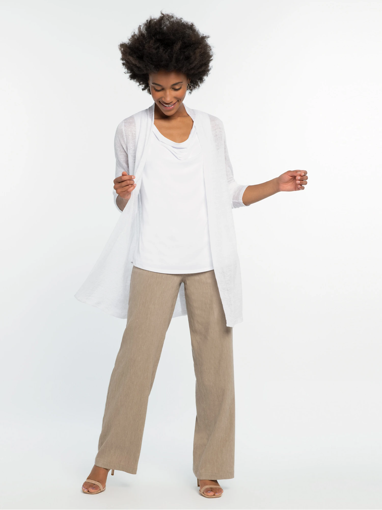 This best-selling open front cardigan is the daily layer expertly designed to flatter. Its side slits slim and elevate the silhouette while intricate stitch detail across the lower back ensures a flattering and feminine drape. The classic shawl collar adds comfort and warmth to a cardigan thatโll never be too far away.