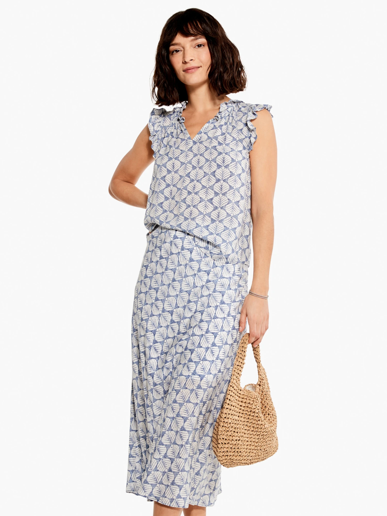 It’s the vintage-yet-modern, organic-yet-geometric print that catches your eye, but don’t sleep on this piece’s delicious details like the feminine ruffle at the sleeve and neck. Dress it up by pairing it with the matching skirt or keep things casual and couple it with your favorite jeans. We gave it a gentle V-neck that complements the pattern and a hem designed to sit at the hip.