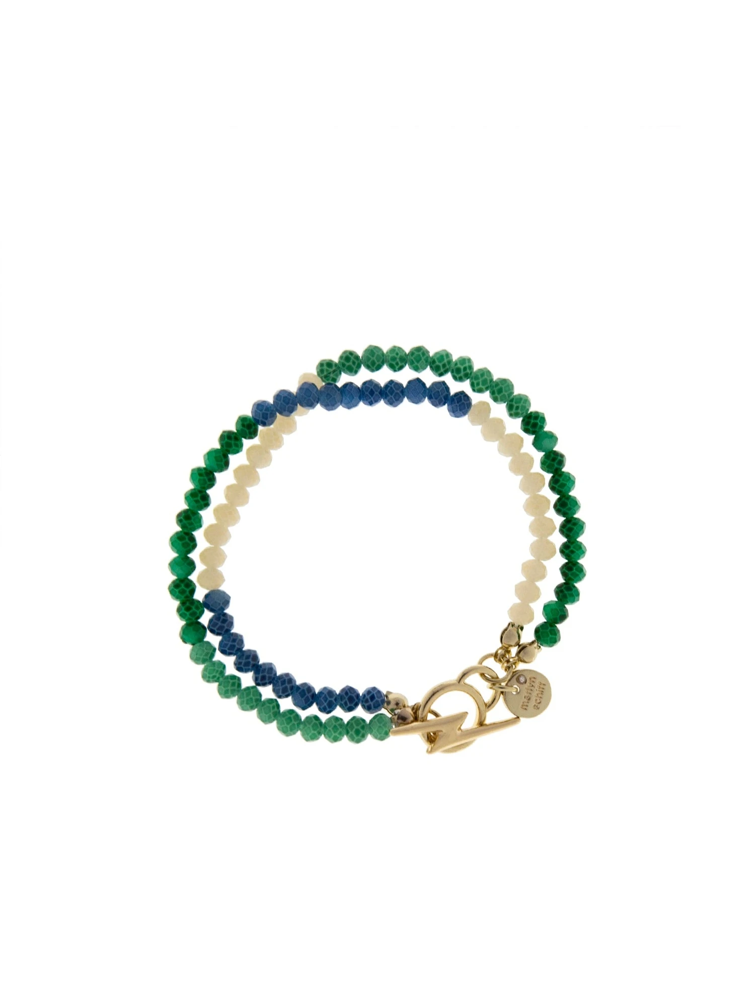2-strand crystal beaded bracelet with lightening bolt toggle clasp closure.