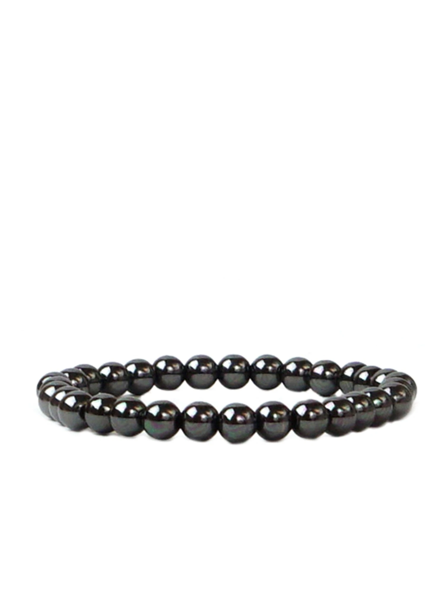 MARLYN SCHIFF 6 MM METAL BEADED STRETCH BRACELET HEMATITE
