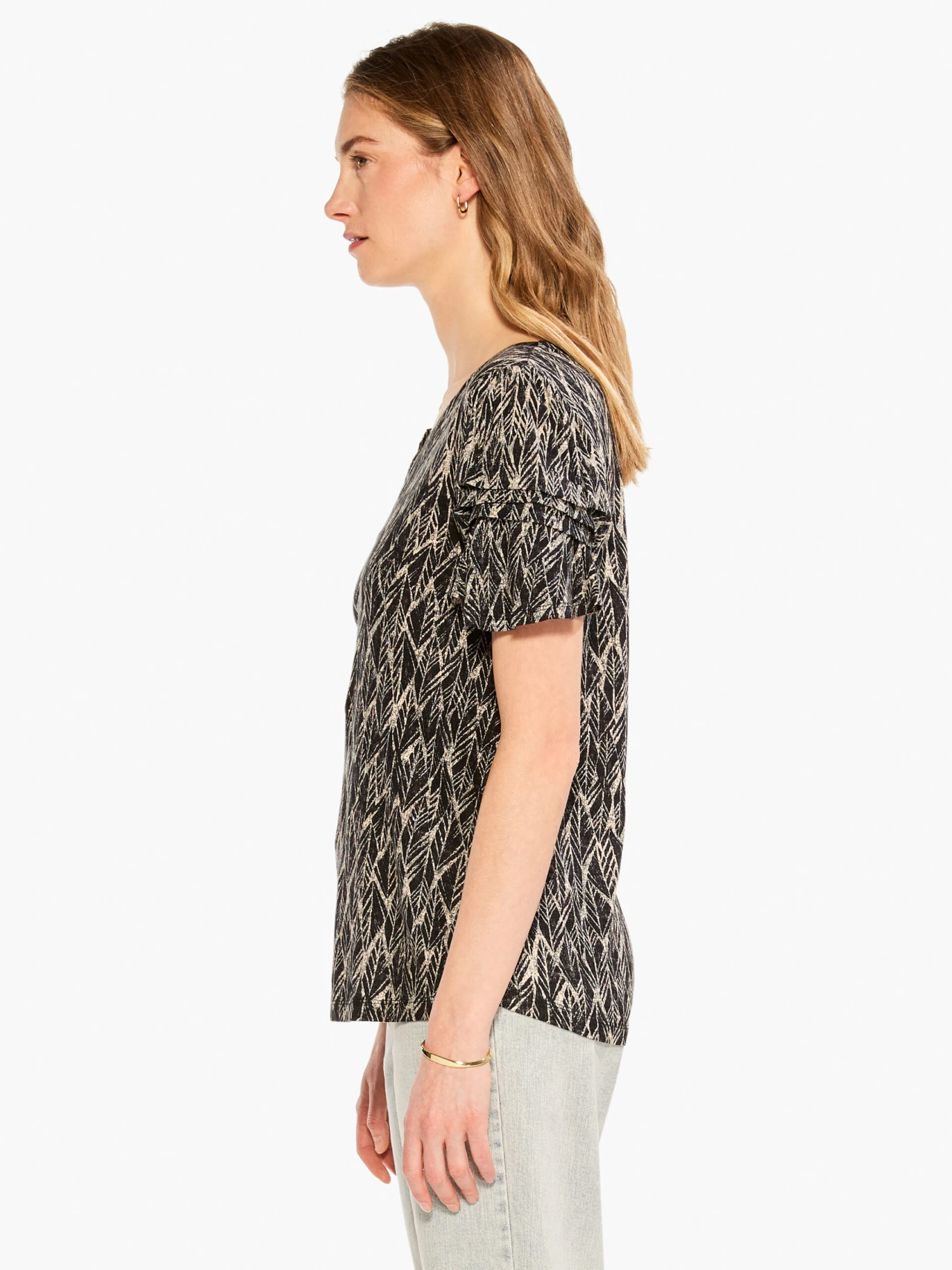 If you ask us, very T-shirt collection needs a touch of print. This split neck tee features an intricate design inspired by nature in a black and an elegant neutral so it goes with everything. The fun fashion sleeve features flutter detailing for extra airiness, and it’s made from our deliciously breathable linen modal blend.