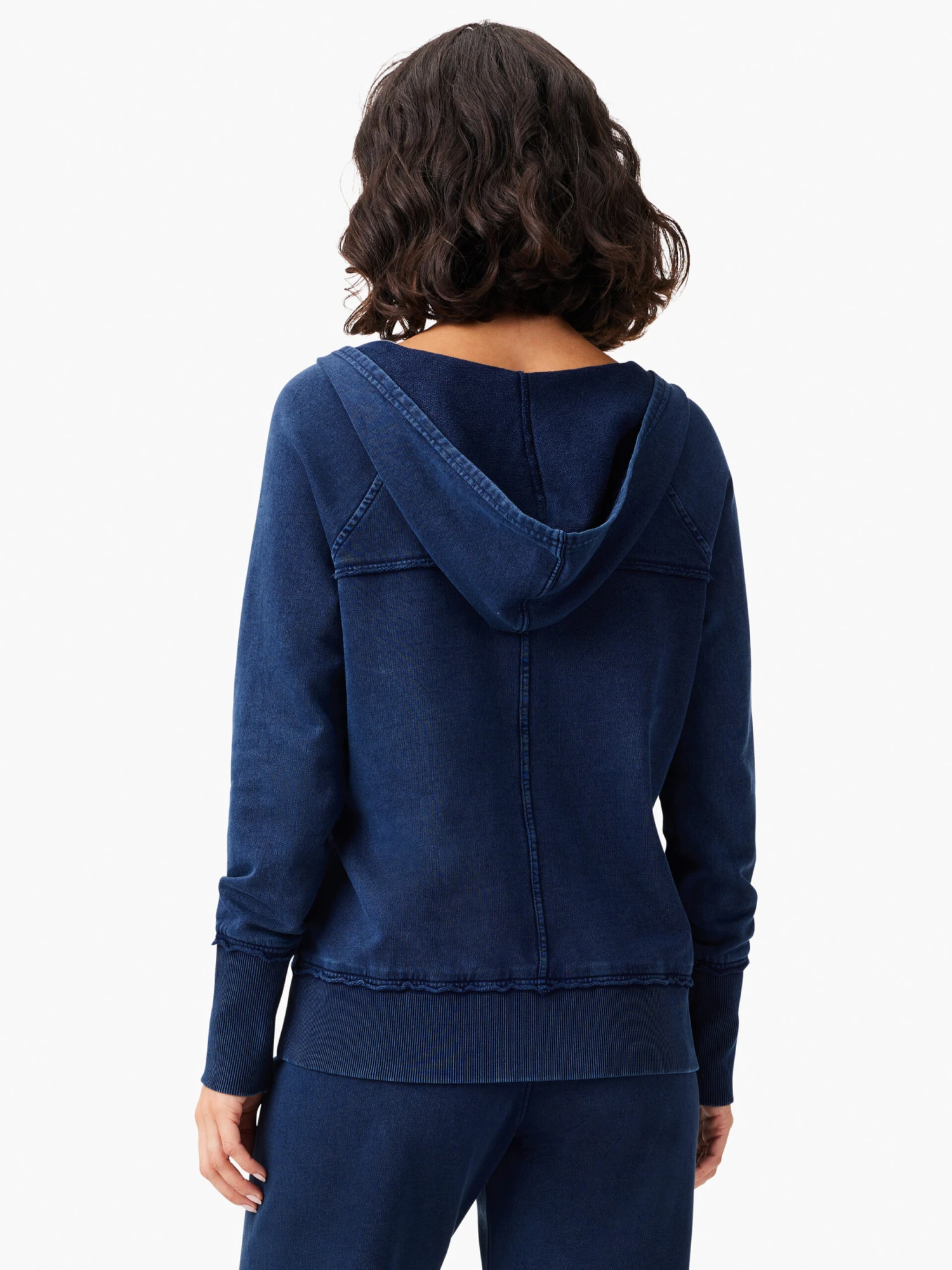 When you take “taking it easy” seriously, this 100% cotton hoodie is the relaxed fit lounge-y top for you. The deep (really deep!) V neck is unlike anything else, and the functional kangaroo pocket adds utility to the ease. Raw edge detailing at the seams adds more vintage charm to this one-of-a-kind style. Pair it with the matching pant for an effortless set.