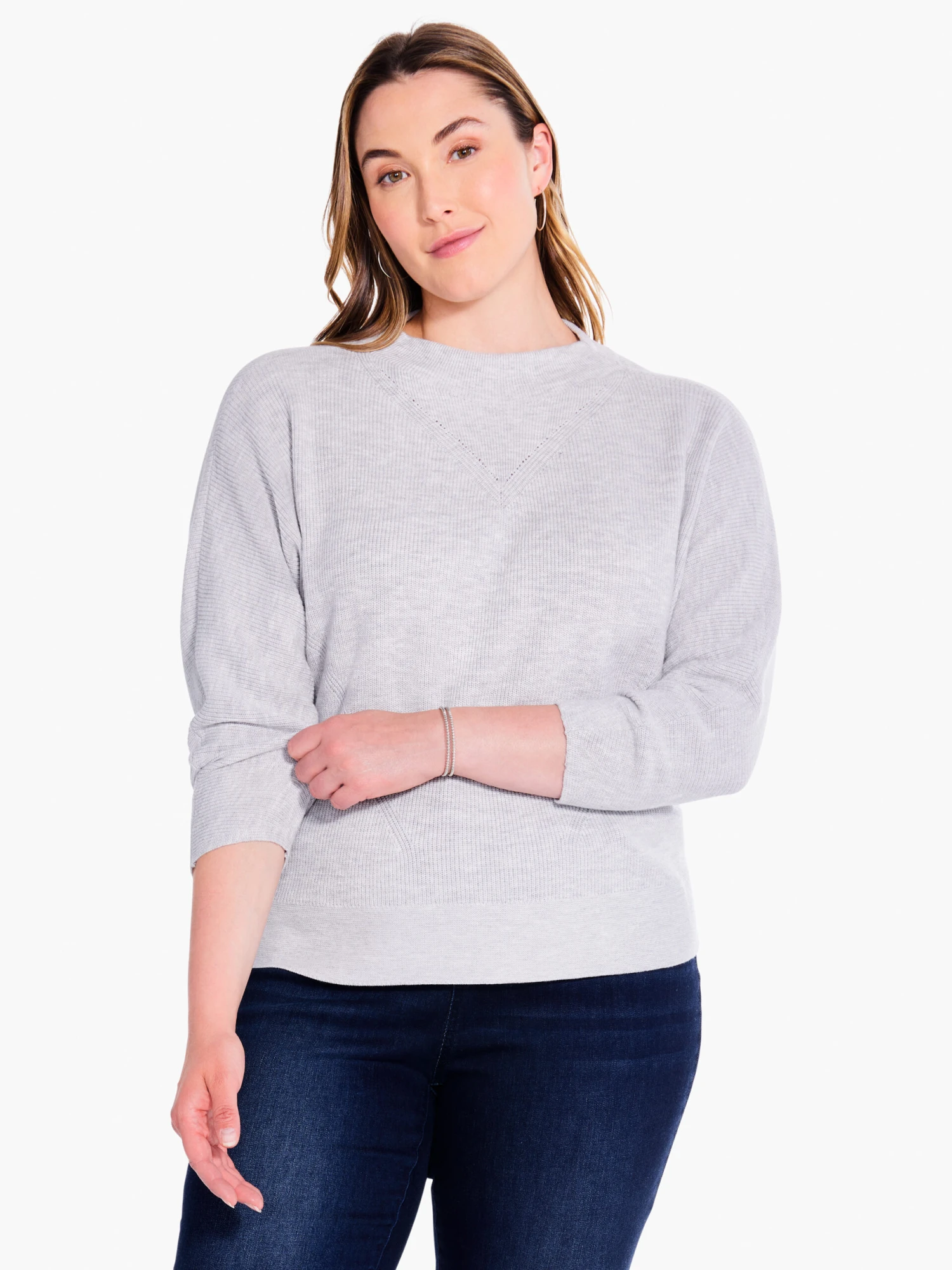 - Front of sweater has fashioning stitch details
