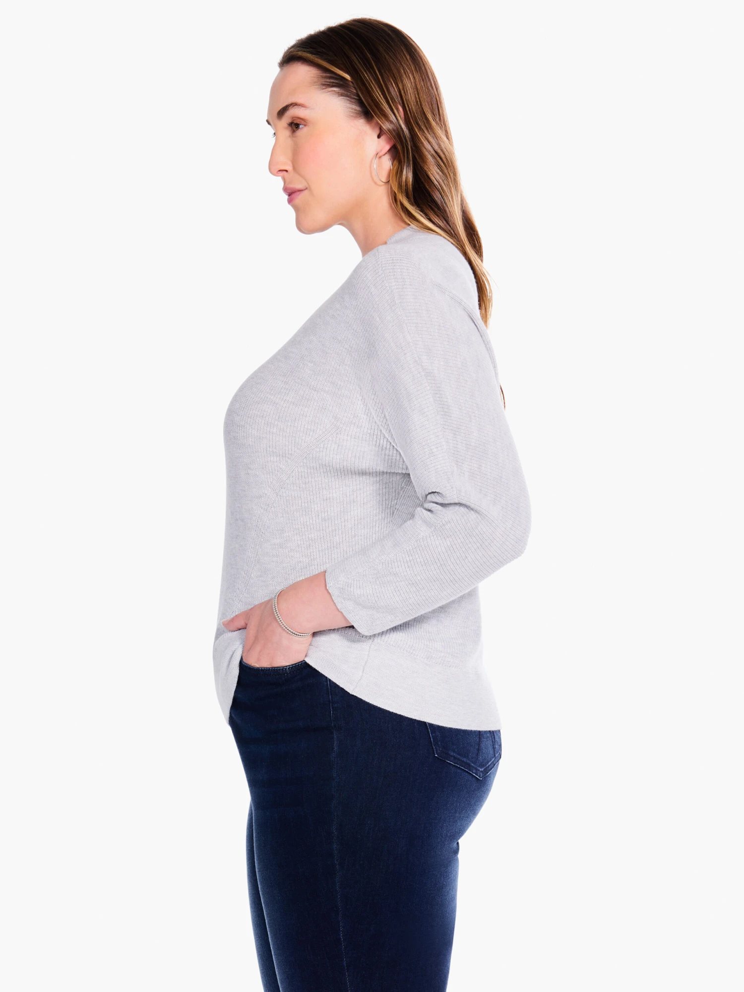 A timeless shaker knit stitch with a few shapely upgrades. We love the knit in V-detail along the collar that’s echoed further down the body, the shaped sleeves, and the distinct funnel neck shape. Midweight and made to have a more relaxed fit with a hem that sits at the hip. Mindfully Made from “no waste” knitwear.