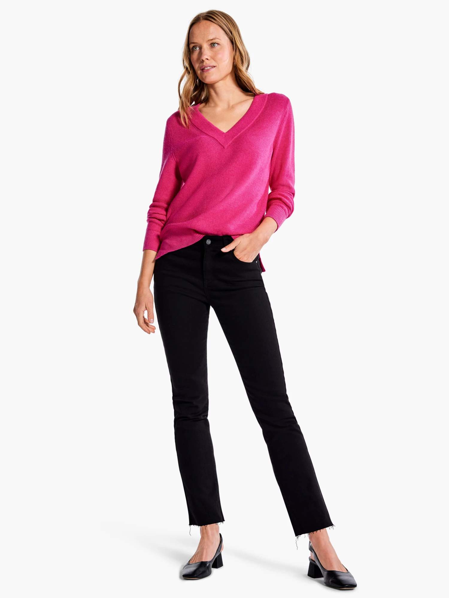 Waffle Stitch V-Neck Sweater SHOCKING PINK